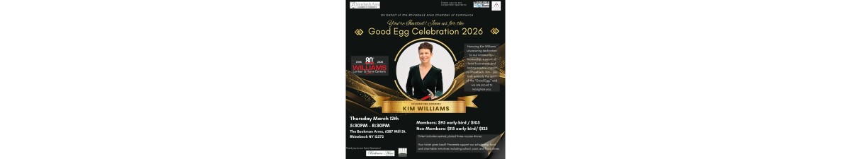 This year’s Good Egg honors Kim for her extraordinary leadership, generosity, and lasting impact on the Rhinebeck community. As CEO of Williams Lumber & Home Centers, Kim has been a steady force for good—supporting local businesses, investing in the community, and leading with integrity, vision, and heart. Her service and dedication continue to inspire those around her, making Rhinebeck a stronger place to live, work, and do business.