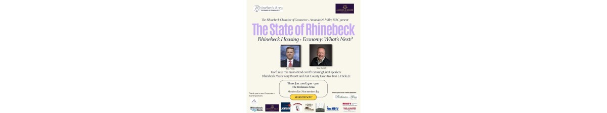 Join us as Mayor Gary Bassett and Ron Hicks share what’s on the horizon for housing and the Rhinebeck economy in 2026. This year’s event will be focused, engaging, and interactive—designed to spark conversation, insight, and connection in fresh new ways.