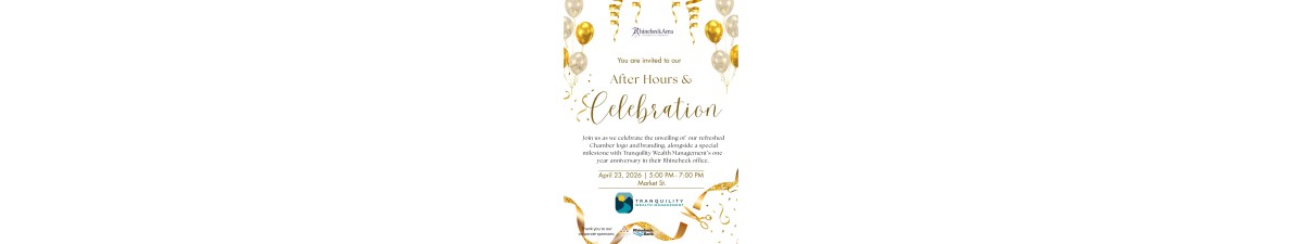 Join Tranquility Wealth Management and the Rhinebeck Area Chamber of Commerce as we celebrate the one-year anniversary of Tranquility’s Rhinebeck office—along with the unveiling of the Chamber’s new logo.